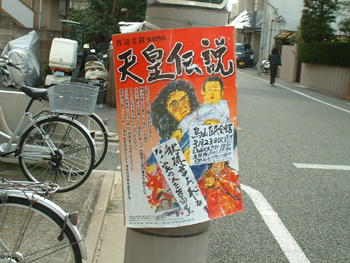自宅のまん前の電柱になんともケバケバしいボスターが・・・と思いみてみると